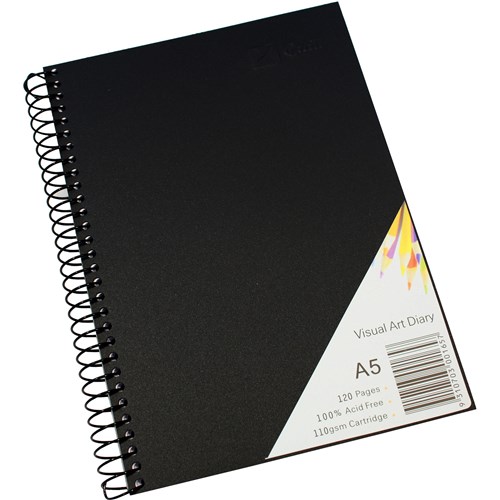 Quill Visual Art Diary A5 110gsm Cartridge 120 Pages Poly Cover Black
