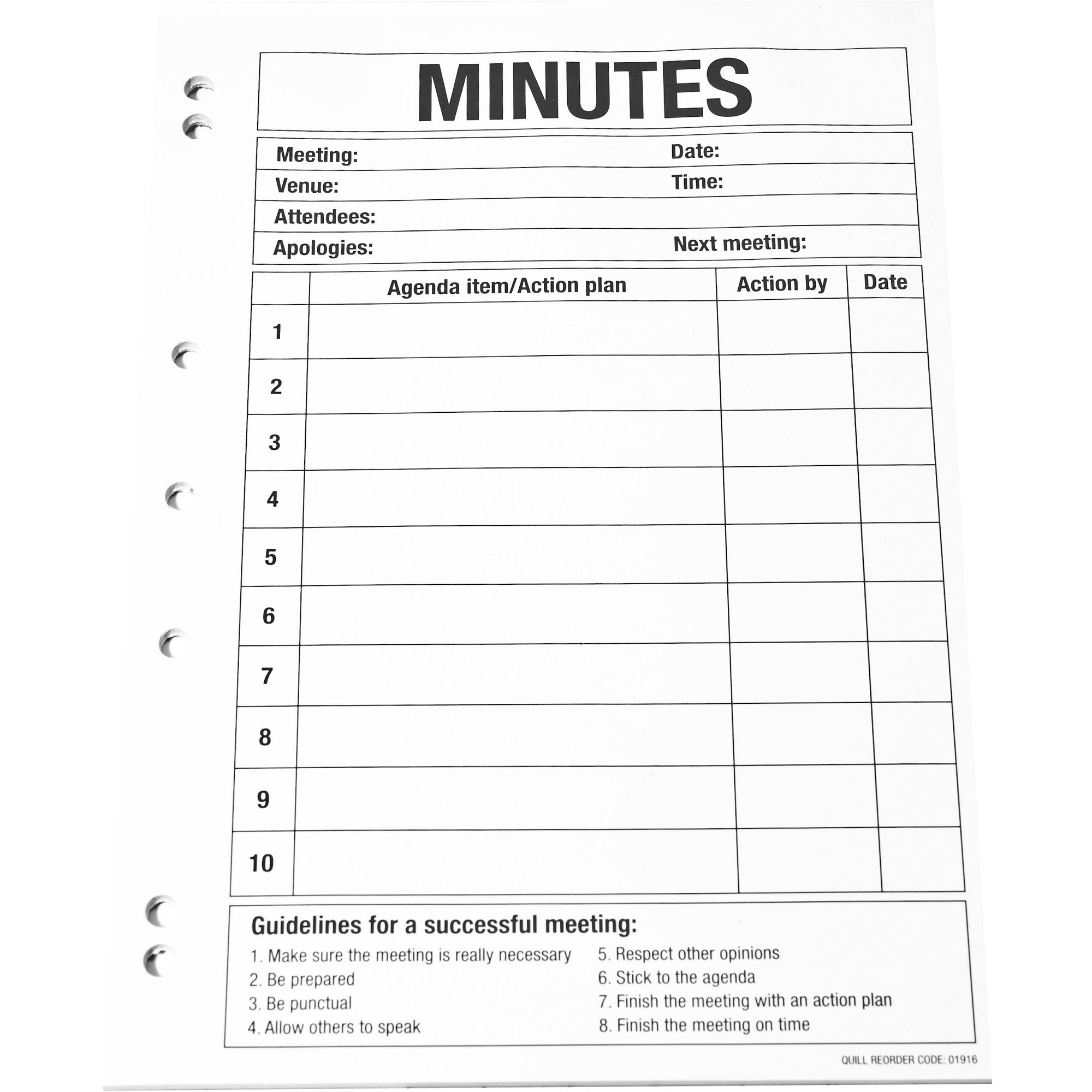 Quill Planner Pad A4 Meeting Minutes 70gsm 50 Leaf