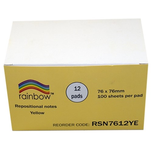 Rainbow Repositional Notes 76mm x 76mm Yellow Pack Of 12