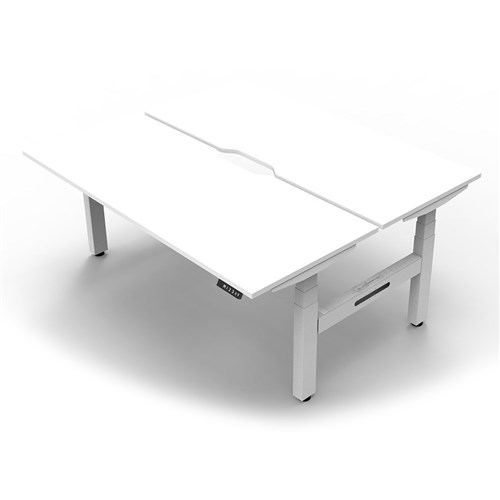 The entire Boost+ range has now been performance tested and is compliant to the AFRDI standards for general safety, strength, durability and stability in all sizes and configurations based on AS/NZS 4442:201. Unit Dimension: 1500mm W x 1500mm D x 1330mm H (Overall). Per User: 1500mm W x 750mm D. Desk Height: 620-1270mm H. Smooth and quiet adjustment at 38mm per second. Min Digital control panel with 3 pre-set positions, LED display panel, keypad safety lock and reminder alarm setting. Natural White coloured worksurface with 750mm depth top. 50mm D scallop cut out to rear. Back to Back Workstation with Cable Tray. Dual Motor 3 stage motorised legs. 140kg weight loading capacity. 10 Year Manufacturer's Warranty. Delivery, installation and assembly charges may apply to furniture. Please enquire to confirm.