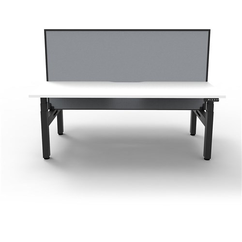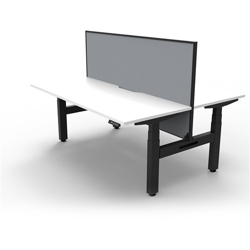 The entire Boost+ range has now been performance tested and is compliant to the AFRDI standards for general safety, strength, durability and stability in all sizes and configurations based on AS/NZS 4442:201. Unit Dimension: 1200mm W x 1500mm D x 1330mm H (Overall). Per User: 1200mm W x 750mm D. Desk Height: 620-1270mm H. Includes pinnable privacy screen in grey fabric with matching black powder coated frame. 900mm H x 30mm T. Smooth and quiet adjustment at 38mm per second. Min Digital control panel with 3 pre-set positions, LED display panel, keypad safety lock and reminder alarm setting. Natural White coloured worksurface with 750mm depth top. 50mm D scallop cut out to rear. Back to Back Workstation with Screen. Dual motor 3 stage motorised legs. 140kg weight loading capacity. 10 Year Manufacturer's Warranty. Delivery, installation and assembly charges may apply to furniture. Please enquire to confirm.