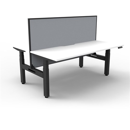 The entire Boost+ range has now been performance tested and is compliant to the AFRDI standards for general safety, strength, durability and stability in all sizes and configurations based on AS/NZS 4442:201. Unit Dimension: 1500mm W x 1500mm D x 1330mm H (Overall). Per User: 1500mm W x 750mm D. Desk Height: 620-1270mm H. Includes pinnable privacy screen in grey fabric with matching black powder coated frame. 900mm H x 30mm T. Smooth and quiet adjustment at 38mm per second. Min Digital control panel with 3 pre-set positions, LED display panel, keypad safety lock and reminder alarm setting. Natural White coloured worksurface with 750mm depth top. 50mm D scallop cut out to rear. Back to Back Workstation with Screen. Dual motor 3 stage motorised legs. 140kg weight loading capacity. 10 Year Manufacturer's Warranty. Delivery, installation and assembly charges may apply to furniture. Please enquire to confirm.