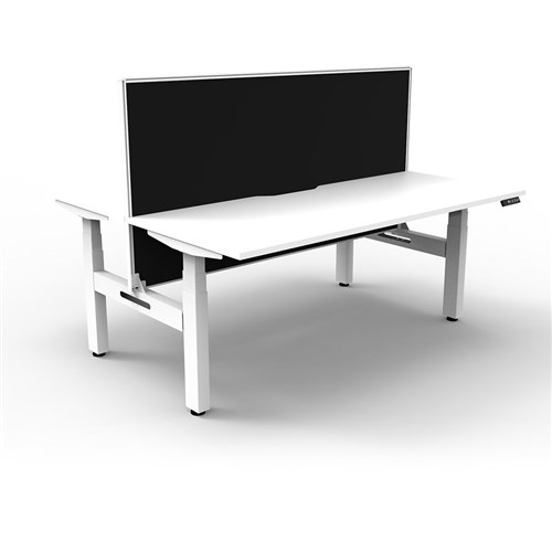 The entire Boost+ range has now been performance tested and is compliant to the AFRDI standards for general safety, strength, durability and stability in all sizes and configurations based on AS/NZS 4442:201. Unit Dimension: 1800mm W x 1500mm D x 1330mm H (Overall). Per User: 1800mm W x 750mm D. Desk Height: 620-1270mm H. Includes pinnable privacy screen in black fabric with matching white powder coated frame. 900mm H x 30mm T. Smooth and quiet adjustment at 38mm per second. Min Digital control panel with 3 pre-set positions, LED display panel, keypad safety lock and reminder alarm setting. Natural White coloured worksurface with 750mm depth top. 50mm D scallop cut out to rear. Back to Back Workstation with Screen. Dual motor 3 stage motorised legs. 140kg weight loading capacity. 10 Year Manufacturer's Warranty. Delivery, installation and assembly charges may apply to furniture. Please enquire to confirm.