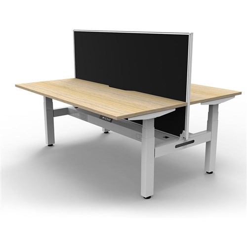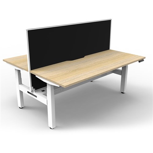 The entire Boost+ range has now been performance tested and is compliant to the AFRDI standards for general safety, strength, durability and stability in all sizes and configurations based on AS/NZS 4442:201. Unit Dimension: 1500mm W x 1500mm D x 1330mm H (Overall). Per User: 1500mm W x 750mm D. Desk Height: 620-1270mm H. Includes pinnable privacy screen in black fabric with matching white powder coated frame. 900mm H x 30mm T. Smooth and quiet adjustment at 38mm per second. Min Digital control panel with 3 pre-set positions, LED display panel, keypad safety lock and reminder alarm setting. Natural Oak coloured worksurface with 750mm depth top. 50mm D scallop cut out to rear. Back to Back Workstation with Screen and Cable Tray. Dual motor 3 stage motorised legs. 140kg weight loading capacity. 10 Year Manufacturer's Warranty. Delivery, installation and assembly charges may apply to furniture. Please enquire to confirm.