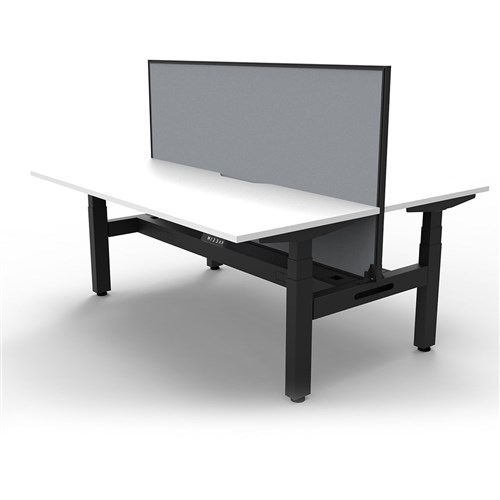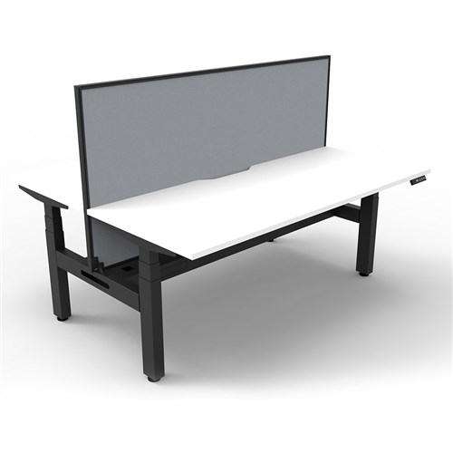 The entire Boost+ range has now been performance tested and is compliant to the AFRDI standards for general safety, strength, durability and stability in all sizes and configurations based on AS/NZS 4442:201. Unit Dimension: 1500mm W x 1500mm D x 1330mm H (Overall). Per User: 1500mm W x 750mm D. Desk Height: 620-1270mm H. Includes pinnable privacy screen in grey fabric with matching black powder coated frame. 900mm H x 30mm T. Smooth and quiet adjustment at 38mm per second. Min Digital control panel with 3 pre-set positions, LED display panel, keypad safety lock and reminder alarm setting. Natural White coloured worksurface with 750mm depth top. 50mm D scallop cut out to rear. Back to Back Workstation with Screen and Cable Tray. Dual motor 3 stage motorised legs. 140kg weight loading capacity. 10 Year Manufacturer's Warranty. Delivery, installation and assembly charges may apply to furniture. Please enquire to confirm.