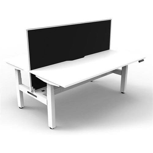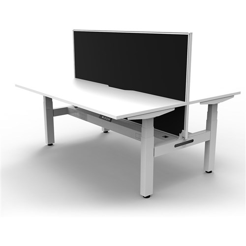 The entire Boost+ range has now been performance tested and is compliant to the AFRDI standards for general safety, strength, durability and stability in all sizes and configurations based on AS/NZS 4442:201. Unit Dimension: 1500mm W x 1500mm D x 1330mm H (Overall). Per User: 1500mm W x 750mm D. Desk Height: 620-1270mm H. Includes pinnable privacy screen in black fabric with matching white powder coated frame. 900mm H x 30mm T. Smooth and quiet adjustment at 38mm per second. Min Digital control panel with 3 pre-set positions, LED display panel, keypad safety lock and reminder alarm setting. Natural White coloured worksurface with 750mm depth top. 50mm D scallop cut out to rear. Back to Back Workstation with Screen and Cable Tray. Dual motor 3 stage motorised legs. 140kg weight loading capacity. 10 Year Manufacturer's Warranty. Delivery, installation and assembly charges may apply to furniture. Please enquire to confirm.