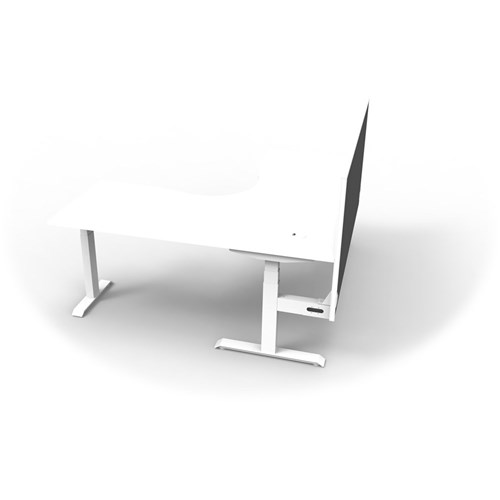 The entire Boost+ range has now been performance tested and is compliant to the AFRDI standards for general safety, strength, durability and stability in all sizes and configurations based on AS/NZS 4442:201. Unit Dimension:1500mm W x 1500mm W x 750mm D x 620mm - 1270mm H. Includes pinnable privacy screen in black fabric with matching white powder coated frame. 900mm H x 30mm T. Smooth and quiet adjustment at 38mm per second. Min Digital control panel with 3 pre-set positions, LED display panel, keypad safety lock and reminder alarm setting. Natural White coloured worksurface with 750mm depth top. 50mm D scallop cut out to rear. Dual Motor 3 stage motorised legs. Corner Workstation with screen. 140kg weight loading capacity. 10 Year Manufacturer's Warranty. Delivery, installation and assembly charges may apply to furniture. Please enquire to confirm.