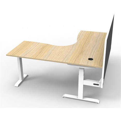 The entire Boost+ range has now been performance tested and is compliant to the AFRDI standards for general safety, strength, durability and stability in all sizes and configurations based on AS/NZS 4442:201. Unit Dimension:1800mm W x 1800mm W x 750mm D x 620mm - 1270mm H. Includes pinnable privacy screen in black fabric with matching white powder coated frame. 900mm H x 30mm T. Smooth and quiet adjustment at 38mm per second. Digital control panel with 3 pre-set positions, LED display panel, keypad safety lock and reminder alarm setting. Natural Oak coloured worksurface with 750mm depth top. 50mm D scallop cut out to rear. 140kg weight loading capacity. Dual Motor 3 stage motorised legs. Corner Workstation with Screen. 10 Year Manufacturer's Warranty. Delivery, installation and assembly charges may apply to furniture. Please enquire to confirm.