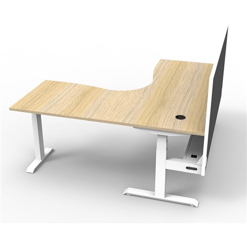 The entire Boost+ range has now been performance tested and is compliant to the AFRDI standards for general safety, strength, durability and stability in all sizes and configurations based on AS/NZS 4442:201. Unit Dimension:1500mm W x 1500mm W x 750mm D x 620mm - 1270mm H. Includes pinnable privacy screen in black fabric with matching white powder coated frame. 900mm H x 30mm T. Keypad safety lock and reminder alarm setting. Digital control panel with 3 pre-set positions. LED display panel. Anti- collision and anti-tilt technology. Dual Motor 3 stage motorised legs. Corner Workstation with Cable Tray and Screen. 140kg weight loading capacity. 10 Year Manufacturer's Warranty. Delivery, installation and assembly charges may apply to furniture. Please enquire to confirm.