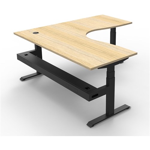The entire Boost+ range has now been performance tested and is compliant to the AFRDI standards for general safety, strength, durability and stability in all sizes and configurations based on AS/NZS 4442:201. Natural Oak top Black frame. Includes cable tray. Unit Dimensions:1500W x 1500W x 750D x 620mm - 1270mmH. E0 rated top, powder coated base. Keypad safety lock and reminder alarm setting. Digital control panel with 3 pre-set positions and LED display panel. Anti- collision and anti-tilt technology. Dual motor 3 stage motorised legs. 140kg weight loading capacity. 10 Year Manufacturer's Warranty. Delivery, installation and assembly charges may apply to furniture. Please enquire to confirm.