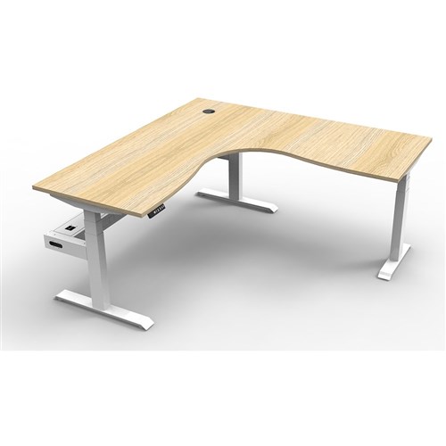 The entire Boost+ range has now been performance tested and is compliant to the AFRDI standards for general safety, strength, durability and stability in all sizes and configurations based on AS/NZS 4442:201. Natural Oak top White frame. Includes cable tray. Unit Dimensions: 1800W x 1500W x 750D x 620mm - 1270mmH. E0 rated top, powder coated base. Keypad safety lock and reminder alarm setting. Digital control panel with 3 pre-set positions and LED display panel. Anti- collision and anti-tilt technology. Dual motor 3 stage motorised legs. 140kg weight loading capacity. 10 Year Manufacturer's Warranty. Delivery, installation and assembly charges may apply to furniture. Please enquire to confirm.