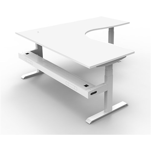 The entire Boost+ range has now been performance tested and is compliant to the AFRDI standards for general safety, strength, durability and stability in all sizes and configurations based on AS/NZS 4442:201. Natural White top White frame. Includes cable tray. Unit Dimensions: 1800W x 1500W x 750D x 620mm - 1270mmH. E0 rated top, powder coated base. Keypad safety lock and reminder alarm setting. Digital control panel with 3 pre-set position and LED display panel. Anti- collision and anti-tilt technology. Dual motor 3 stage motorised legs. 140kg weight loading capacity. 10 Year Manufacturer's Warranty. Delivery, installation and assembly charges may apply to furniture. Please enquire to confirm.