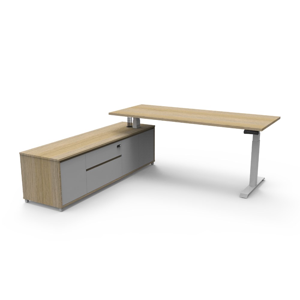 Rapidline Boost+ Executive Desk + LHS Cabinet 2020W x 2011D x 620-1270mmH Oak/White