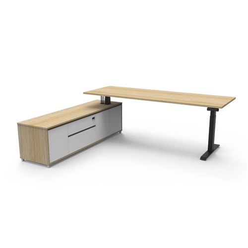 Rapidline Boost+ Executive Desk + LHS Cabinet 2270W x 1936D x 620-1270mmH Oak/Black