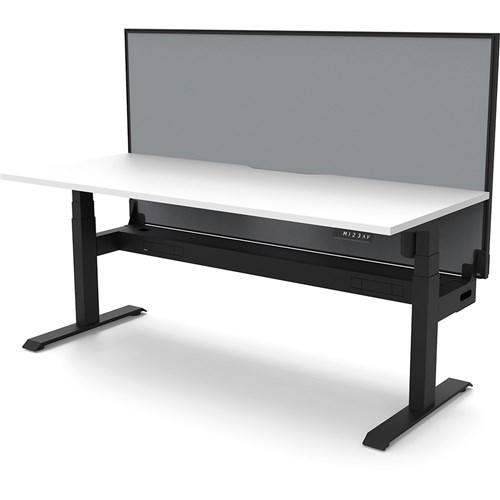 White top with Black frame. Unit Dimension: 1200mm W x 750mm D x 1330mm H. 620-1270mm height range for desk. E0 rated top. Powdercoat base. Digital control panel with 3 pre-set positions, LED display panel, keypad safety lock & reminder alarm setting. Anti-collision technology, noise emission of less than 50DB. Lifting capacity of 80kg with a max speed of 25mm per second. 700mm wide foot size with adjustable leveling feet. Comes with 30mm thick privacy screens and cable tray for cable management. 10 Year Manufacturer's Warranty. Delivery, installation and assembly charges may apply to furniture. Please enquire to confirm.