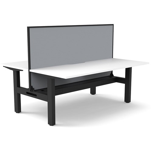 Fixed height desks to match the Boost+ range. White top with Black frame. Unit Dimension: 1200mm W x 1500mm D x 1330mm H. Desk height 730mm. 750mm depth desk per user. E0 rated top. Powdercoat base. Comes with 30mm thick privacy screens and cable tray for cable management. 10 Year Manufacturer's Warranty. Delivery, installation and assembly charges may apply to furniture. Please enquire to confirm.