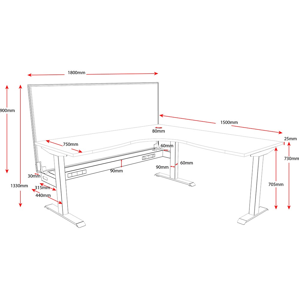 • Unit Dimension: 1800/1500mm W x 750mm D x 1330mm H.
