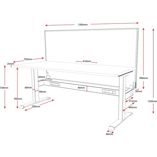 Fixed height desks to match the Boost+ range. White top with Black frame. Unit Dimension: 1500mm W x 750mm D x 730mm H. E0 rated top. Powdercoat base. 10 Year Manufacturer's Warranty. Delivery, installation and assembly charges may apply to furniture. Please enquire to confirm.