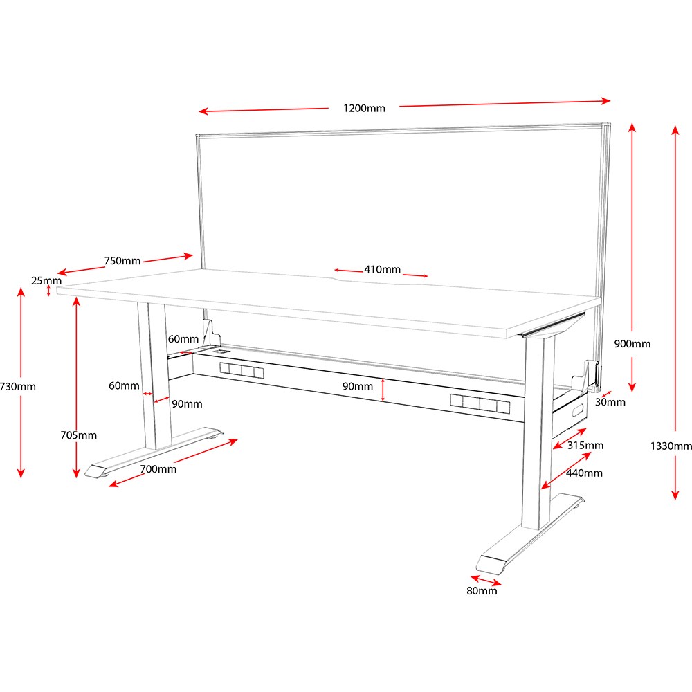 Fixed height desks to match the Boost+ range. White top with White frame. Unit Dimension: 1200mm W x 750mm D x 1330mm H. Desk height 730mm. E0 rated top. Powdercoat base. Comes with 30mm thick privacy screen. 10 Year Manufacturer's Warranty. Delivery, installation and assembly charges may apply to furniture. Please enquire to confirm.