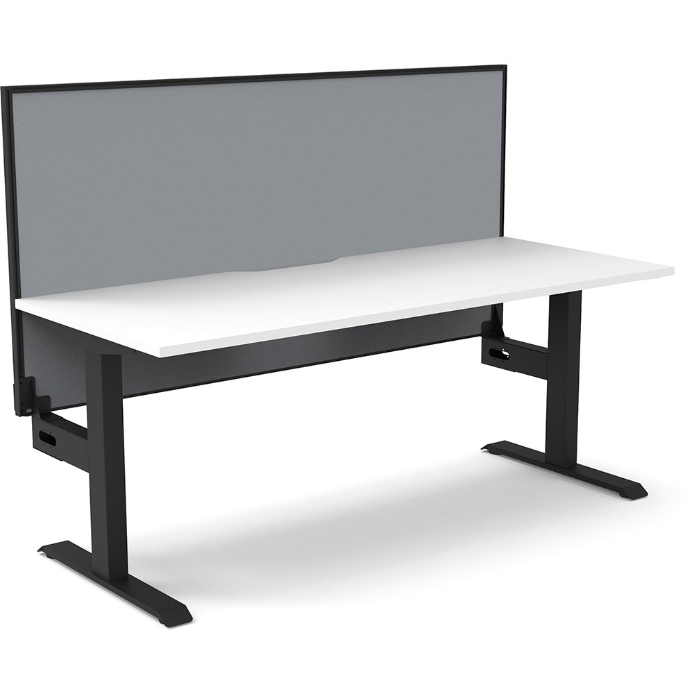 Fixed height desks to match the Boost+ range. White top with Black frame. Unit Dimension: 1800mm W x 750mm D x 1330mm H. Desk height 730mm. E0 rated top. Powdercoat base. Comes with 30mm thick privacy screen. 10 Year Manufacturer's Warranty. Delivery, installation and assembly charges may apply to furniture. Please enquire to confirm.