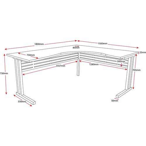Rapidline C Leg Corner Workstation 1800/1500W x 750D x 730mmH Natural Oak/Silver