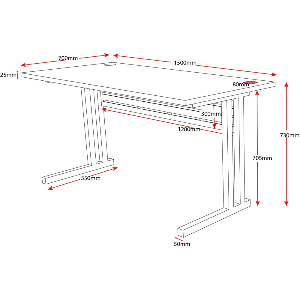 • 2 x 80mm diameter cable hole.