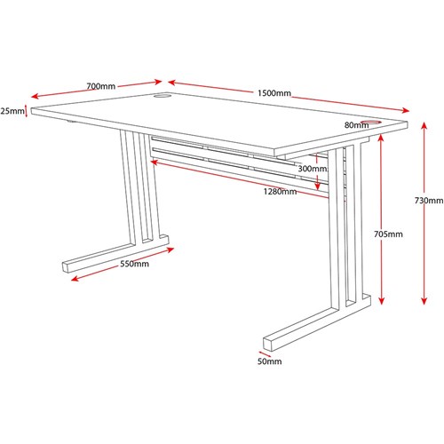 Rapidline C Leg Desk 1500W x 700D x 730mmH Beech/Silver