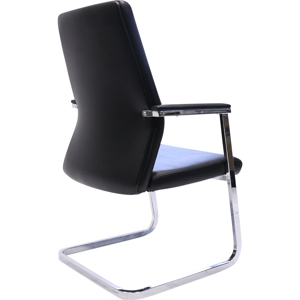 Chrome cantilever frame and padded arm rests and glides fitted to underside of frame. Upholstered in soft commercial grade black PU leather. Soft PU armrest pads with robust polished aluminium supports. 120 Kg weight rating. Chair Dimensions: Seat 510W x 510D x Back 610mmH. Seat Height: 460mmH. Floor to top of arm measurement 10 Year Manufacturer's Warranty. Delivery, installation and assembly charges may apply to furniture. Please enquire to confirm.