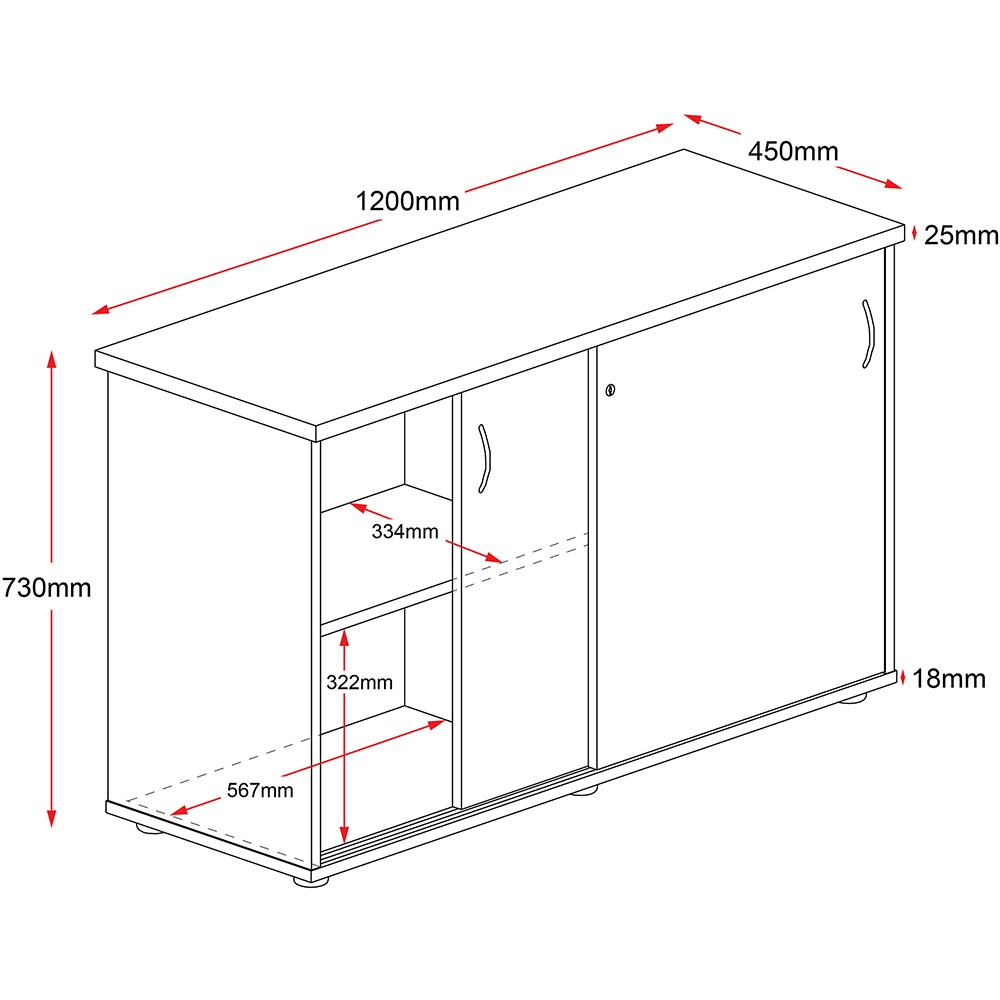 Rapidline Credenza Sliding Doors 1200W x 450D x 730mmH Oak And Ironstone