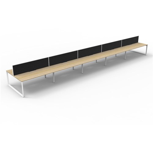 Maximise space and create an efficient working environment with Deluxe Rapid Infinity. With scallop for cable access, and a recessed leg to create full leg access in long runs of workstations. Overall Including Screen: 6000mm W x 1530mm D x 1200mm H. Per User: 1200mm W x 750mm D. Desk Height: 730mm. Includes pinnable privacy screen in black fabric with matching white powder coated frame. 495mm H x 30mm T. With 410mm W x 50mm D Scallop Cable Access. 60mm x 45mm bevelled edge powder coated Loop Leg underframe. Recessed leg to create full leg access in long runs of workstations. Scalloped top for easy wire management. Double support rail for extra strength. Adjustable levelling feet. E0 Enviroboard. 5 Year Manufacturer's Warranty. Delivery, installation and assembly charges may apply to furniture. Please enquire to confirm.