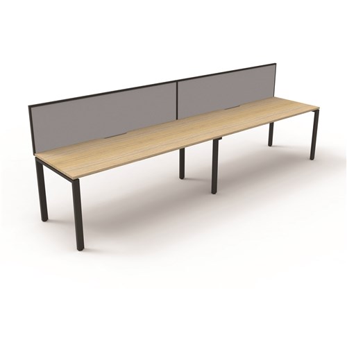 Maximise space and create an efficient working environment with Deluxe Rapid Infinity. Configure multiple workstations together to create pods of desks. Overall: 3600mm W x 780mm D x 1200mm H (including screen). Per User: 1800mm W x 750mm D x 730mm H. 495mm H x 30mm T pinnable privacy screen upholstered in grey fabric with matching black powder coat extrusion. Natural Oak worksurface with 410mm W x 50mm D scallop cable access. 60mm x 30mm Profile Leg adds a minimalist look to each workstation. Deeper 750mm top. Double support rail for extra strength. E0 Enviroboard. 5 Year Manufacturer's Warranty. Delivery, installation and assembly charges may apply to furniture. Please enquire to confirm.