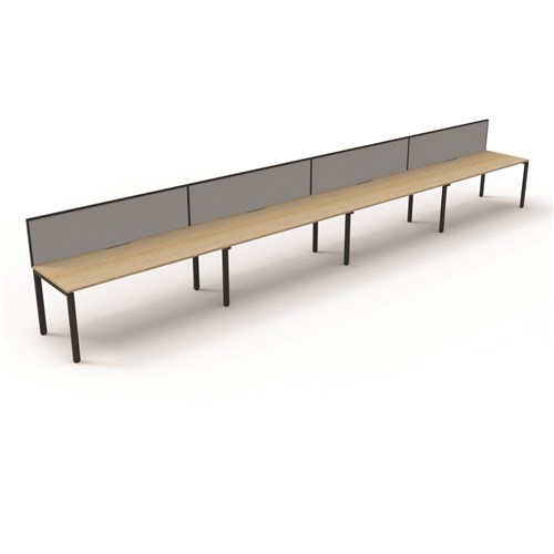 Maximise space and create an efficient working environment with Deluxe Rapid Infinity. Configure multiple workstations together to create pods of desks. Overall: 4800mm W x 780mm D x 1200mm H (including screen). Per User: 1200mm W x 750mm D x 730mm H. 495mm H x 30mm T pinnable privacy screen upholstered in grey fabric with matching black powder coat extrusion. Natural Oak worksurface with 410mm W x 50mm D scallop cable access. 60mm x 30mm Profile Leg adds a minimalist look to each workstation. Deeper 750mm top. Double support rail for extra strength. E0 Enviroboard. 5 Year Manufacturer's Warranty. Delivery, installation and assembly charges may apply to furniture. Please enquire to confirm.