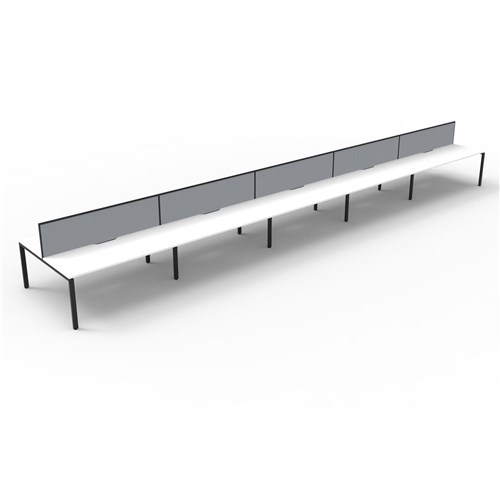 Maximise space and create an efficient working environment with Deluxe Rapid Infinity. Configure multiple workstations together to create pods of desks. Overall: 9000mm W x 1530mm D x 1200mm H. Per User: 1800mm W x 750mm D. Desk Height: 730mm. 495mm H x 30mm T pinnable privacy screen upholstered in grey fabric with matching black powder coat extrusion. Natural White worksurface with 410mm W x 50mm D scallop cable access. 60mm x 30mm Profile Leg adds a minimalist look to each workstation. Scalloped top for easy wire management. Double support rail for extra strength. E0 Enviroboard. 5 Year Manufacturer's Warranty. Delivery, installation and assembly charges may apply to furniture. Please enquire to confirm.