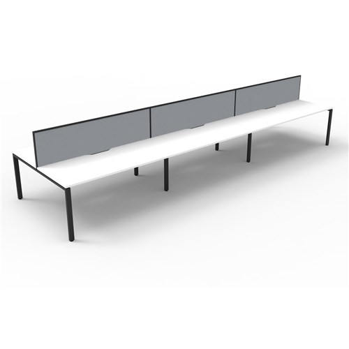 Maximise space and create an efficient working environment with Deluxe Rapid Infinity. Configure multiple workstations together to create pods of desks. Overall: 4500mm W x 1530mm D x 1200mm H. Per User: 1500mm W x 750mm D. Desk Height: 730mm. 495mm H x 30mm T pinnable privacy screen upholstered in grey fabric with matching black powder coat extrusion. Natural White worksurface with 410mm W x 50mm D scallop cable access. 60mm x 30mm Profile Leg adds a minimalist look to each workstation. Scalloped top for easy wire management. Double support rail for extra strength. E0 Enviroboard. 5 Year Manufacturer's Warranty. Delivery, installation and assembly charges may apply to furniture. Please enquire to confirm.