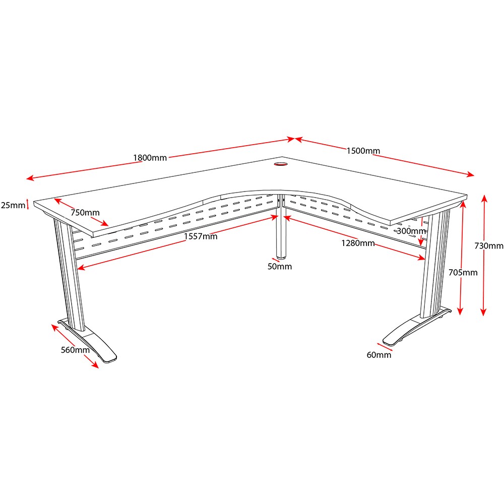 Natural Oak and Black in colour. Sturdy powder coated frame and legs. Comes with metal perforated modesty panel. E0 melamine top. 1 x cable entry hole in corner of top. 750mm deep top for more workspace. Adjustable feet. 5 Years Manufacturer's Warranty. Delivery, installation and assembly charges may apply to furniture. Please enquire to confirm.