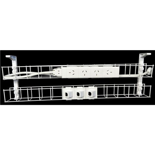 Rapidline Dual Tier Cable Basket Kit 650mm 4GPO+3Data + 1.5m Interconnecting Lead Wht