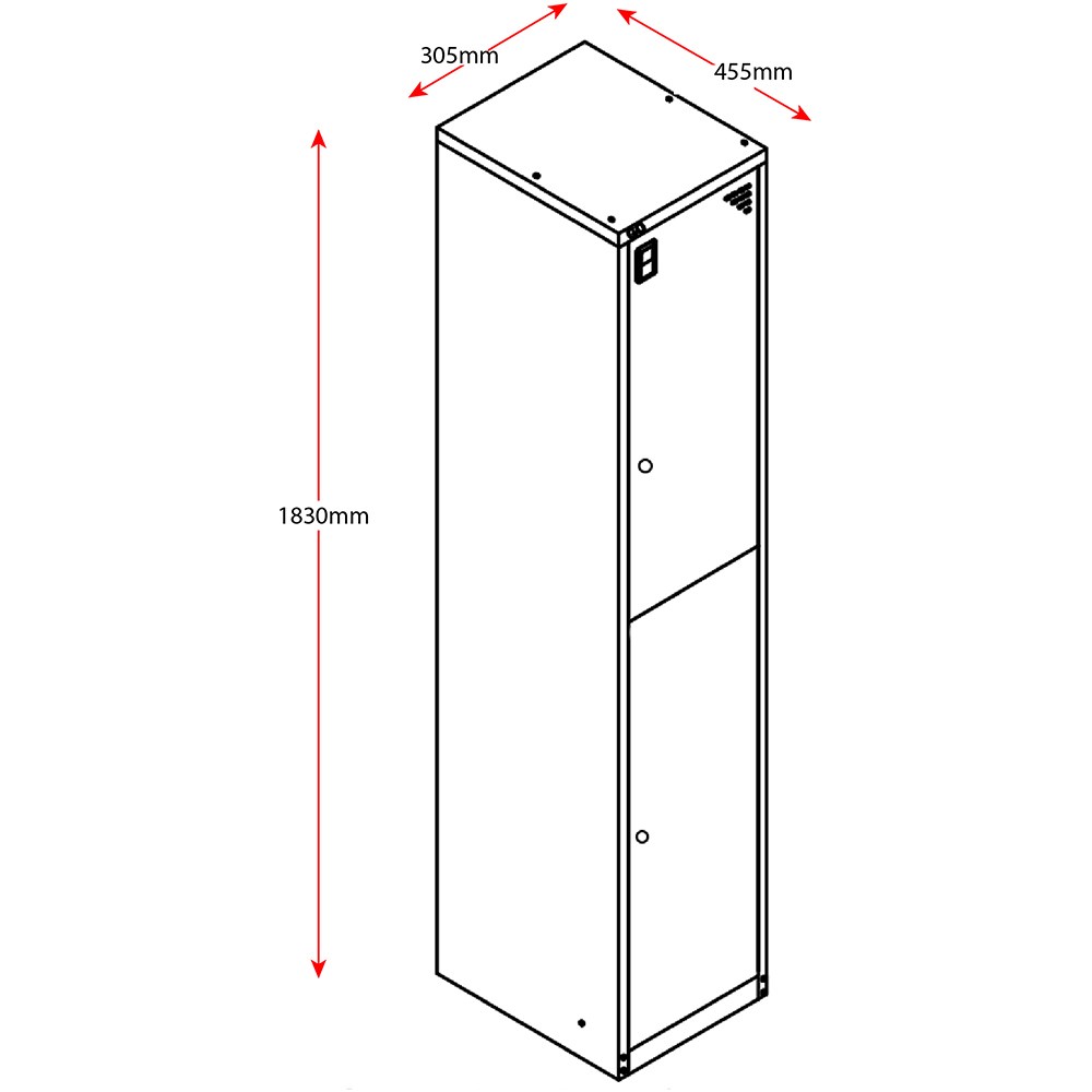 Rapidline Go Locker 2 Door 305W x 455D x 1830mmH White