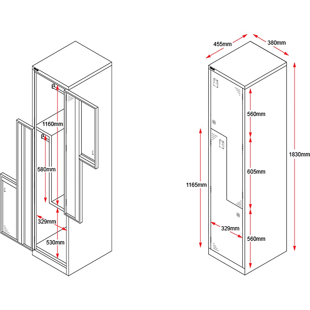 CATEGORY 1 WARNING: This product has a high risk of toppling over. Children have died from furniture tipover. ALWAYS secure this furniture with an anchor device. Comes assembled. Allows full hanging space to each compartment. Riveted construction. Full length door stiffeners. Cam Lock with 2 keys. Coat rail in each compartment. Ventilation on door. 10 Year Manufacturer's Warranty. Delivery, installation and assembly charges may apply to furniture. Please enquire to confirm.