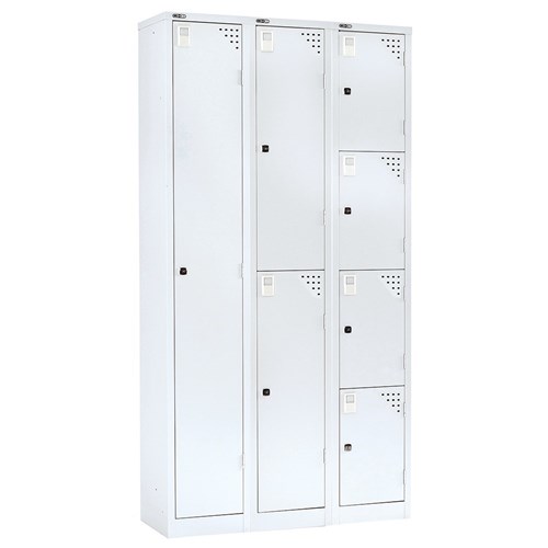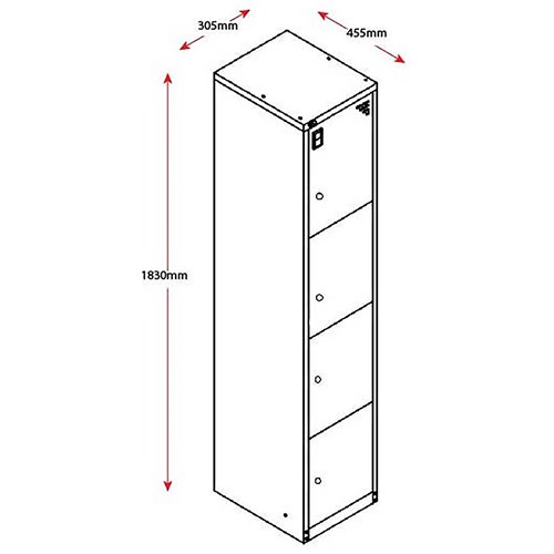 CATEGORY 1 WARNING: This product has a high risk of toppling over. Children have died from furniture tipover. ALWAYS secure this furniture with an anchor device. Riveted construction for extra strength. Full length stiffeners fitted to every door for additional security. Ventilation on door. The 4 door locker maximises valuable space. 10 Year Manufacturer's Warranty. Delivery, installation and assembly charges may apply to furniture. Please enquire to confirm.