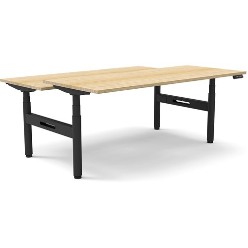 Natural Oak top with Black frame. Unit Dimension: 1200mm W x 1500mm D x 620-1270mm H. 750mm depth per user. E0 rated top. Powdercoat base. Digital control panel with 3 pre-set positions, LED display panel, keypad safety lock & reminder alarm setting. Anti-collision technology, noise emission of less than 50DB. Lifting capacity of 120kg with a max speed of 38mm per second. 70mm diameter round column legs. 700mm wide foot size with adjustable leveling feet, return foot: 700mm. 10 Year Manufacturer's Warranty. Delivery, installation and assembly charges may apply to furniture. Please enquire to confirm.