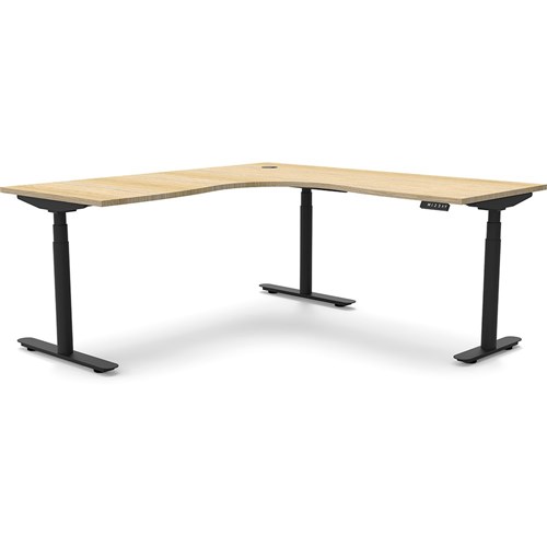 Natural Oak top with Black frame. Unit Dimension: 1800/1500mm W x 750mm D x 620-1270mm H. E0 rated top. Powdercoat base. Digital control panel with 3 pre-set positions, LED display panel, keypad safety lock & reminder alarm setting. Anti-collision technology, noise emission of less than 50DB. Lifting capacity of 120kg with a max speed of 38mm per second. 70mm diameter round column legs. 700mm wide foot size with adjustable leveling feet, return foot: 700mm. 10 Year Manufacturer's Warranty. Delivery, installation and assembly charges may apply to furniture. Please enquire to confirm.