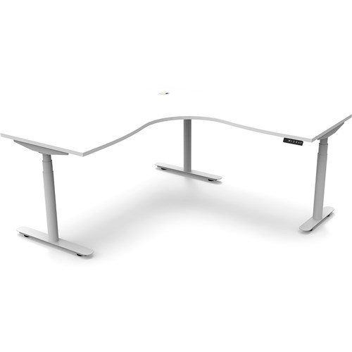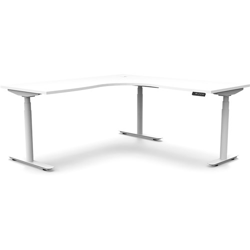 White top with White frame. Unit Dimension: 1800/1800mm W x 750mm D x 620-1270mm H. E0 rated top. Powdercoat base. Digital control panel with 3 pre-set positions, LED display panel, keypad safety lock & reminder alarm setting. Anti-collision technology, noise emission of less than 50DB. Lifting capacity of 120kg with a max speed of 38mm per second. 70mm diameter round column legs. 700mm wide foot size with adjustable leveling feet, return foot: 700mm. 10 Year Manufacturer's Warranty. Delivery, installation and assembly charges may apply to furniture. Please enquire to confirm.