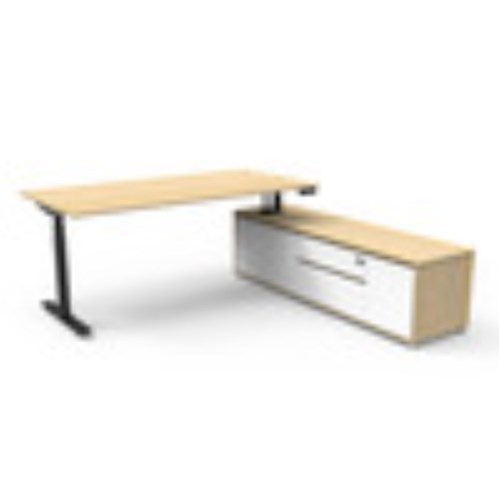 Rapidline Halo+ Executive Desk + RHS Cabinet 2020W x 2011D x 620-1270mmH Oak/Black