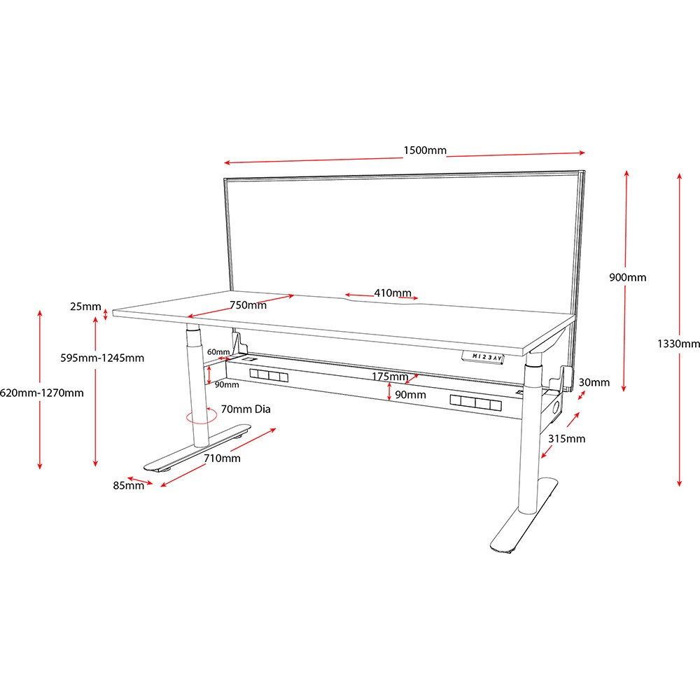 • Unit Dimension: 1500mm W x 750mm D x 620-1270mm H.