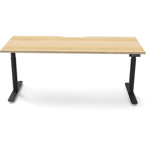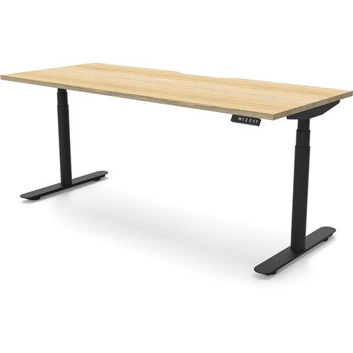 Natural Oak top with Black frame. Unit Dimension: 1500mm W x 750mm D x 620-1270mm H. E0 rated top. Powdercoat base. Digital control panel with 3 pre-set positions, LED display panel, keypad safety lock & reminder alarm setting. Anti-collision technology, noise emission of less than 50DB. Lifting capacity of 120kg with a max speed of 38mm per second. 70mm diameter round column legs. 700mm wide foot size with adjustable leveling feet, return foot: 700mm. 10 Year Manufacturer's Warranty. Delivery, installation and assembly charges may apply to furniture. Please enquire to confirm.