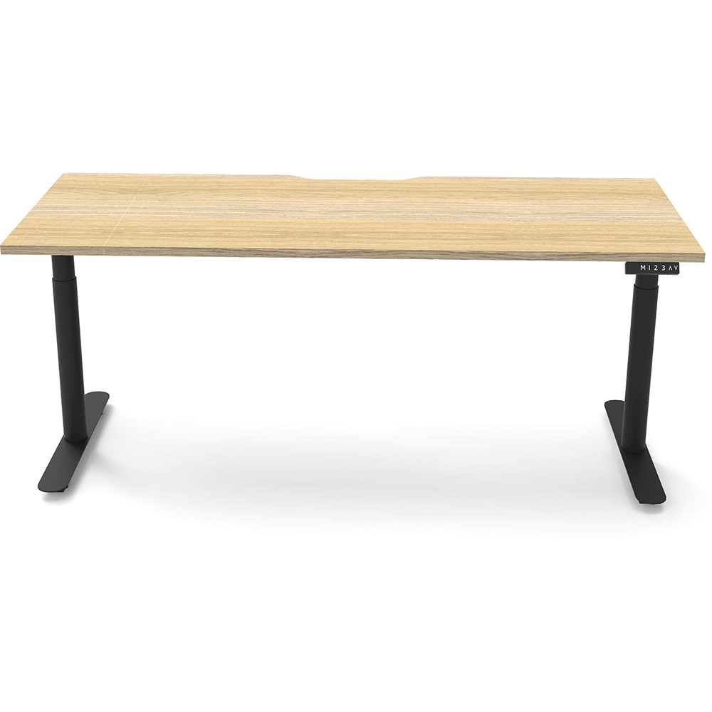 Natural Oak top with Black frame. Unit Dimension: 1800mm W x 750mm D x 620-1270mm H. E0 rated top. Powdercoat base. Digital control panel with 3 pre-set positions, LED display panel, keypad safety lock & reminder alarm setting. Anti-collision technology, noise emission of less than 50DB. Lifting capacity of 120kg with a max speed of 38mm per second. 70mm diameter round column legs. 700mm wide foot size with adjustable leveling feet, return foot: 700mm. 10 Year Manufacturer's Warranty. Delivery, installation and assembly charges may apply to furniture. Please enquire to confirm.