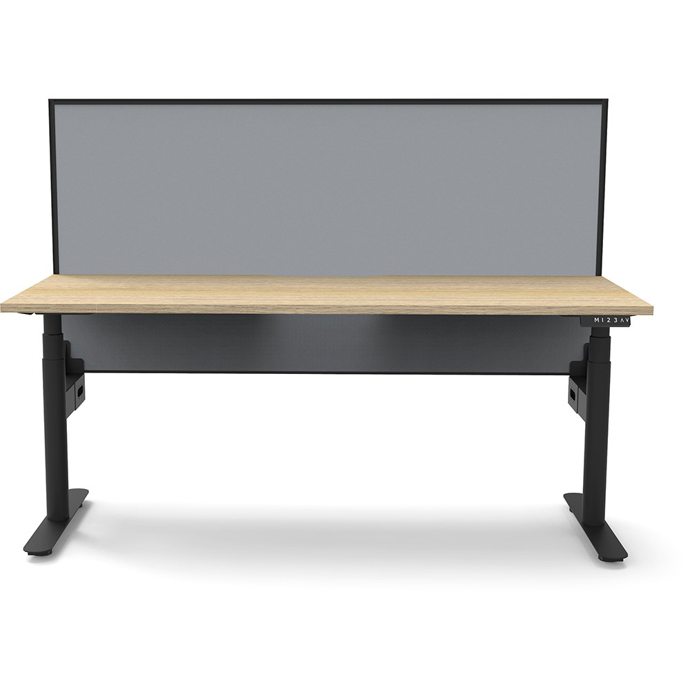 Natural Oak top with Black frame. Unit Dimension: 1200mm W x 750mm D x 1330mm H. 620-1270mm height range for desk. E0 rated top. Powdercoat base. Digital control panel with 3 pre-set positions, LED display panel, keypad safety lock & reminder alarm setting. Anti-collision technology, noise emission of less than 50DB. Lifting capacity of 120kg with a max speed of 38mm per second. 70mm diameter round column legs. 700mm wide foot size with adjustable leveling feet, return foot: 700mm. Comes with 30mm thick privacy screen. 10 Year Manufacturer's Warranty. Delivery, installation and assembly charges may apply to furniture. Please enquire to confirm.