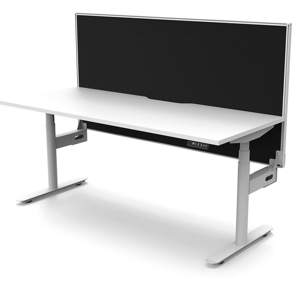 White top with White frame. Unit Dimension: 1500mm W x 750mm D x 1330mm H. 620-1270mm height range for desk. E0 rated top. Powdercoat base. Digital control panel with 3 pre-set positions, LED display panel, keypad safety lock & reminder alarm setting. Anti-collision technology, noise emission of less than 50DB. Lifting capacity of 120kg with a max speed of 38mm per second. 70mm diameter round column legs. 700mm wide foot size with adjustable leveling feet, return foot: 700mm. Comes with 30mm thick privacy screen. 10 Year Manufacturer's Warranty. Delivery, installation and assembly charges may apply to furniture. Please enquire to confirm.