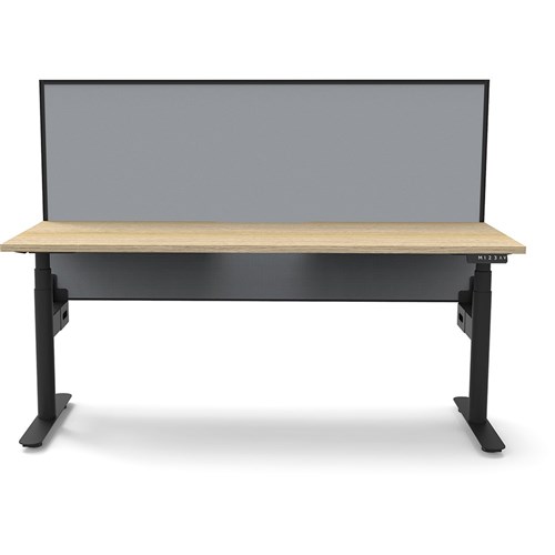Natural Oak top with Black frame. Unit Dimension: 1800mm W x 750mm D x 1330mm H. 620-1270mm height range for desk. E0 rated top. Powdercoat base. Digital control panel with 3 pre-set positions, LED display panel, keypad safety lock & reminder alarm setting. Anti-collision technology, noise emission of less than 50DB. Lifting capacity of 120kg with a max speed of 38mm per second. 70mm diameter round column legs. 700mm wide foot size with adjustable leveling feet, return foot: 700mm. Comes with 30mm thick privacy screen. 10 Year Manufacturer's Warranty. Delivery, installation and assembly charges may apply to furniture. Please enquire to confirm.
