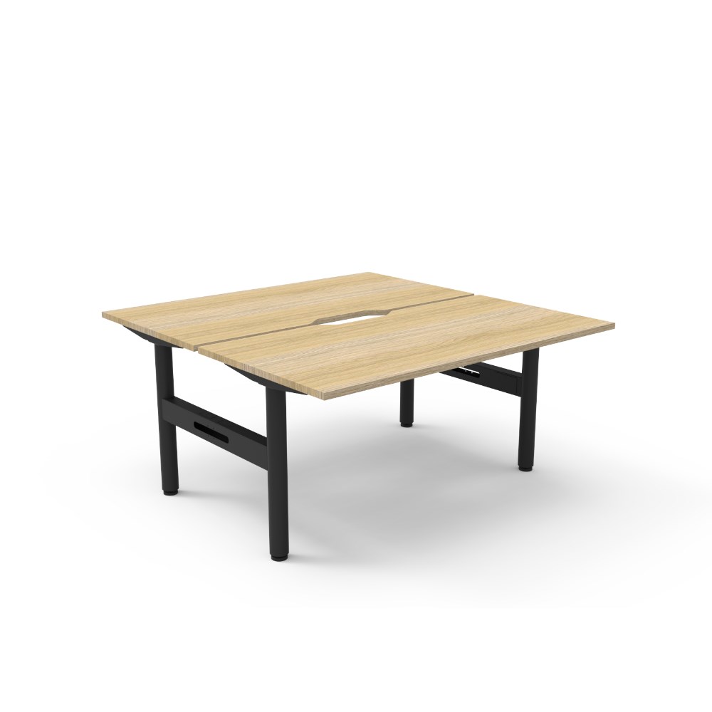 Natural Oak top Black Satin frame. Overall Dimensions: 1500mW x 1500D x 730mmH. Per User Dimensions: 1500W x 750D x 730mmH. E0 rated 25mm top with rigid edging and 50mm diameter scallop cut out to rear. Powder coated underframe. Adjustable levelling feet. Can be customised with optional accessories like cable management solutions and privacy screens. 10 Year Manufacturer's Warranty. Delivery, installation and assembly charges may apply to furniture. Please enquire to confirm.